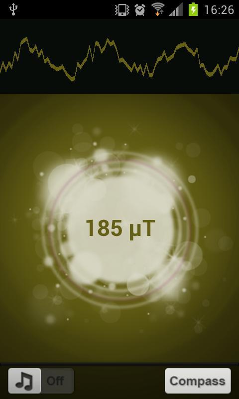 After starting the application, the value of the electromagnetic field will be read. If the intensity of the magnetic field is unsafe for a healthy holiday, the background application will be red, while the location with secure readings will show green better background, uniform amplitude and even sound.