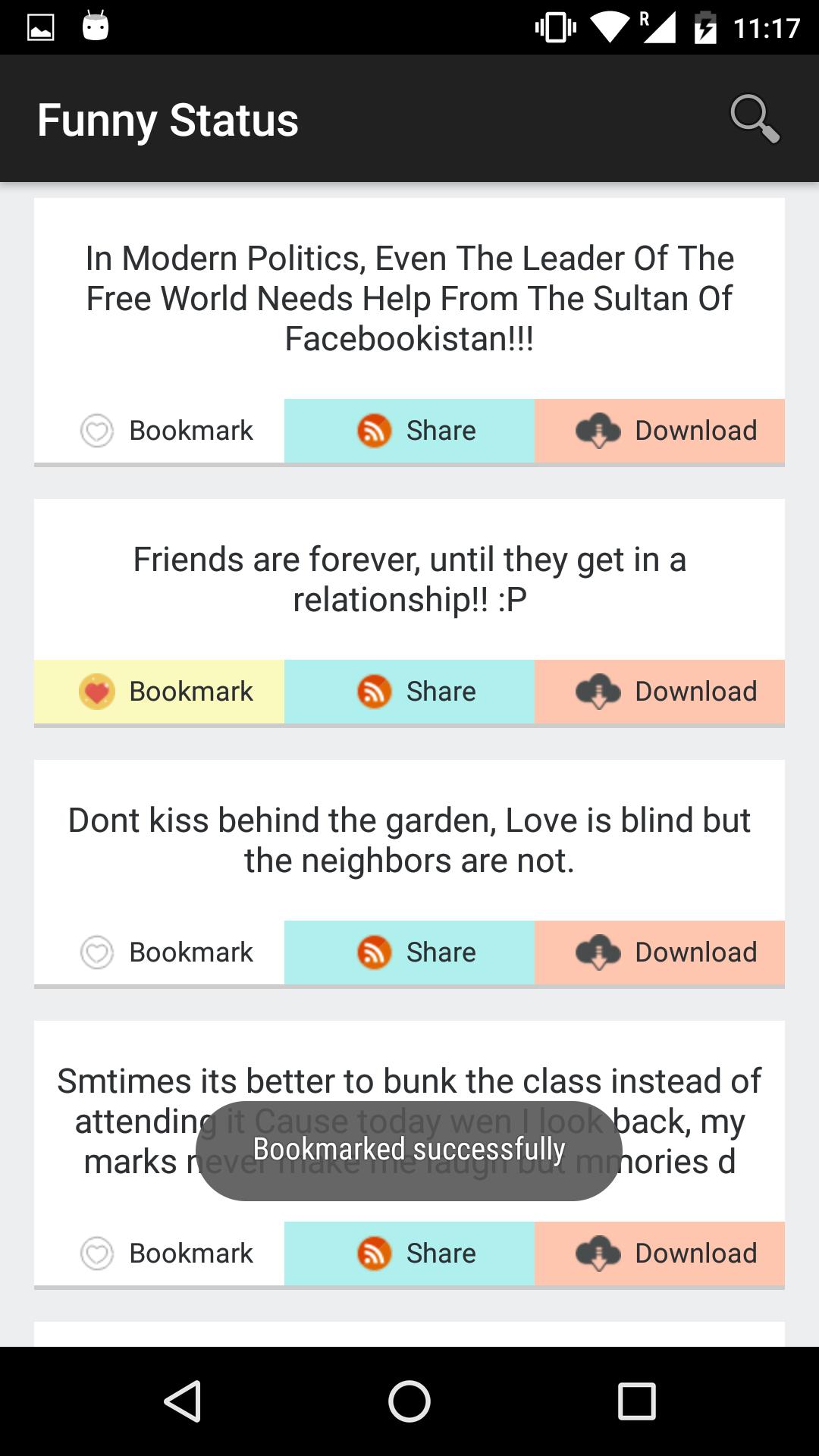 This app will also help you to bookmark your favorite status message for future references. Some of the salient features of this app are:
