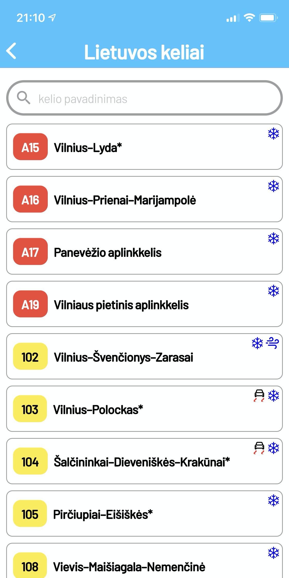Favourite roads information just one click away. Application use device GPS sensor and gets the nearest road weather station information, then updates it every 3 minutes. So while driving on Lithuania roads one will always know the most recent and accurate road weather information.