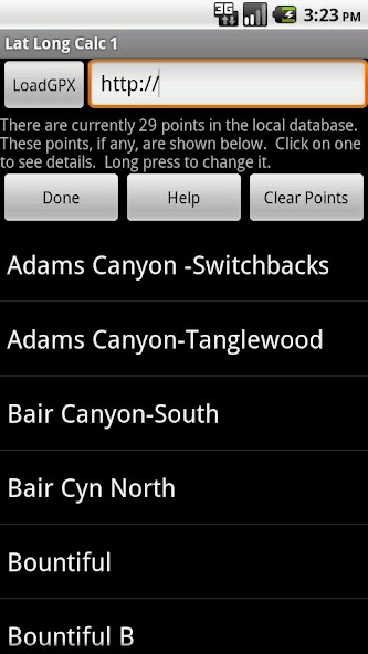 Supports DD.DDD, DD MM.MMM, DD MM SS.SSS, UTM and Maidenhead Locator. Can load points from a GPX and/or save points in local DB for later use.