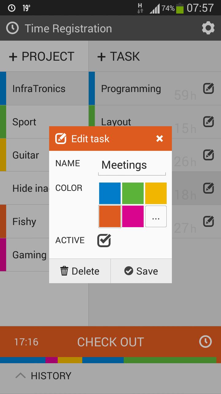 Tags: Time Registration, time register, time tracking, time tracker, time recorder, time record, time clock, timesheet, time sheet, time logger, punch timer, csv export, project based Time Registration, work Time Registration, hobby Time Registration, sport Time Registration, check in, check out, statistics, widget, widget check in, widget check out, Time Registration