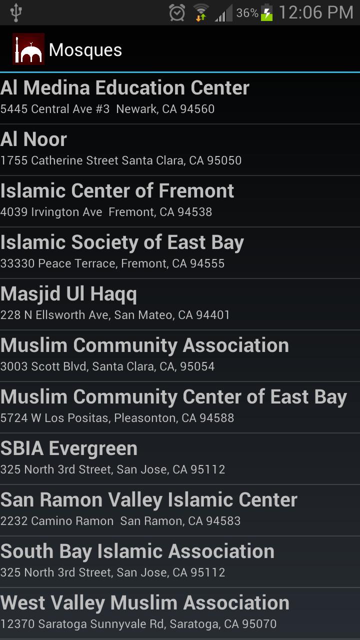 ✓ Prayer Start time and Iqama time for the most prominent Mosques in and around Bay Area, California
