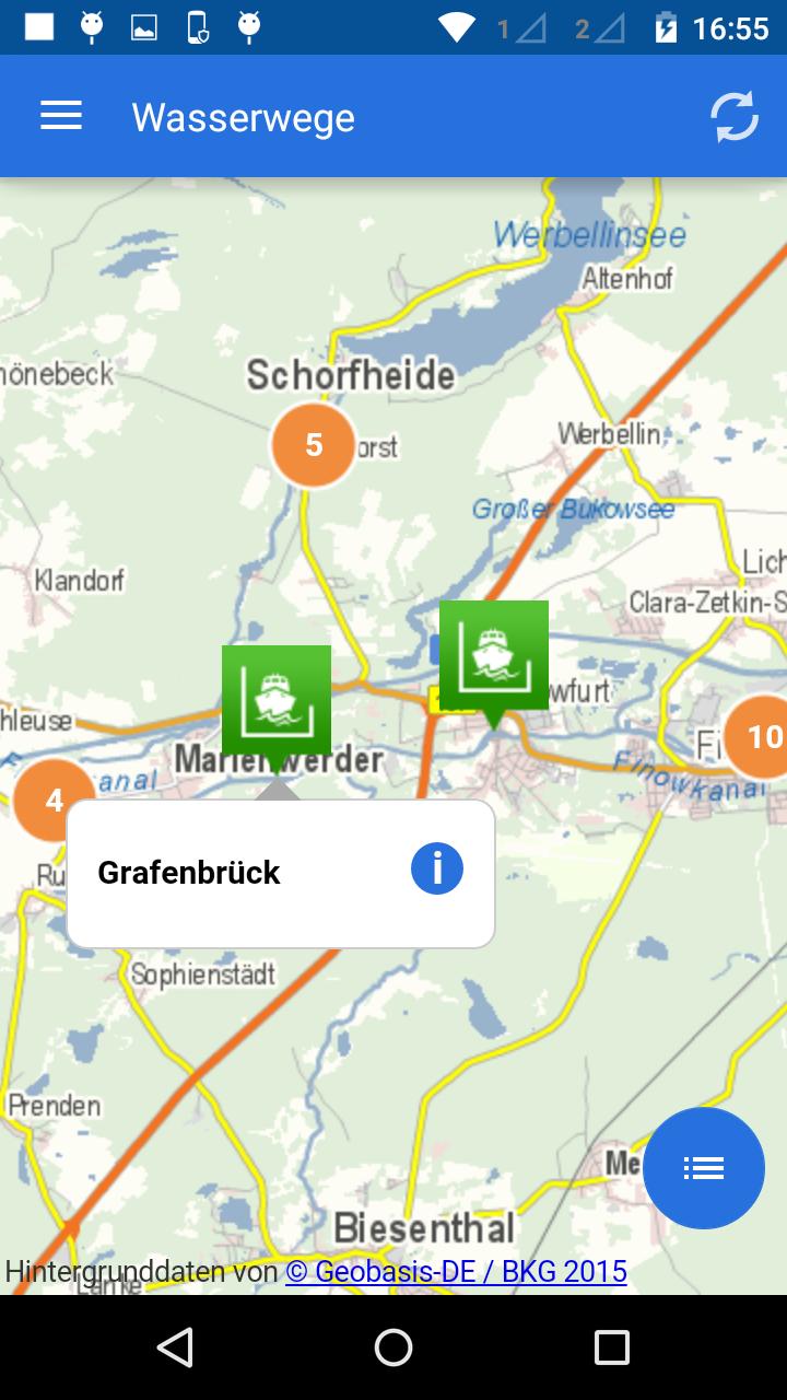 With the Wasserwege app, leisure boats receive current water reports, such as traffic impairments, water levels or ice reports and the opening times of over 600 (six hundred) locks at the federal waterways in Germany on their tablet.