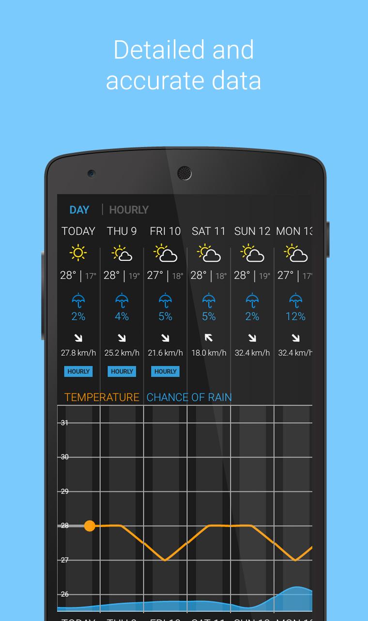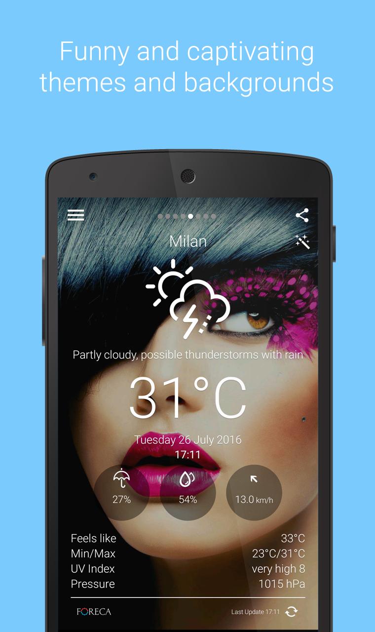 Foreca©'s data feed is what brings to you an always precise and complete weather forecast, just reliable, and represented with intuitive graph charts.
