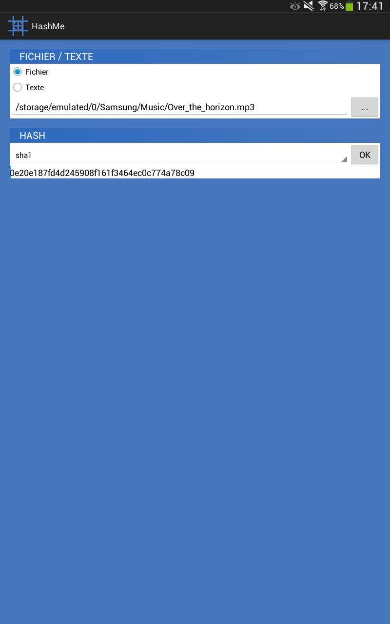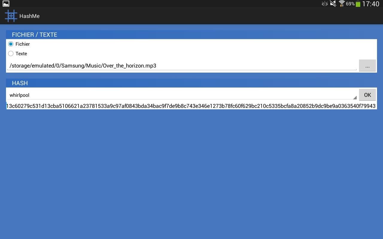 Simply select the file or type the text to analyze, then the hash method and click OK !
