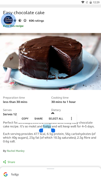 • Search autocomplete helps find words quickly by displaying predictions as you type