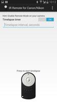 Remote IR control and timelapse intervalometer for Canon and Nikon cameras. It uses phone IR device to send shoot command to camera. Supports such camera as Canon D610, T4i, 650d, Nikon D80 and many others with compatible remotes.