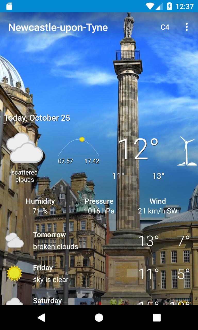Weather forecast for Newcastle-upon-Tyne including wind speed, pressure,humidity