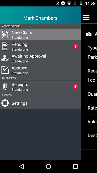 Feature Menu – This will show users all the mobile enabled features they have access to from the Access product suite. The main benefit to this is to group related tasks irrespective of product i.e. In the Approve section you may have Expenses and Timesheets even if these are from different products.