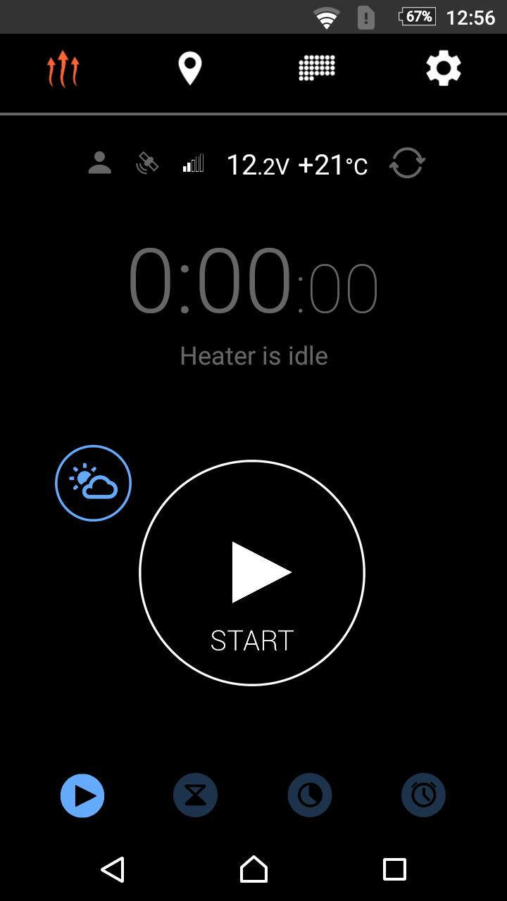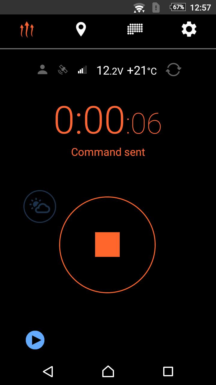 The application is intended for microclimate control in a vehicle by using Autoplugin Therminal equipment. Controls fuel and electrical heater, ventilation, engine start. Informs about heating progress, interior temperature, battery voltage and vehicle location. Easy set up on vehicle configuration just in one click. High secure internet connection and SMS both can be used for data transfer to the vehicle and backward.