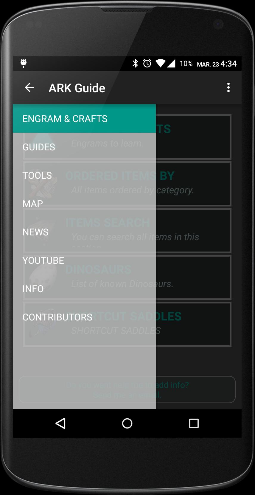 This app is a guide that contains all game engrams. They are sorted by level an you can see the description, necessary points and explanation.