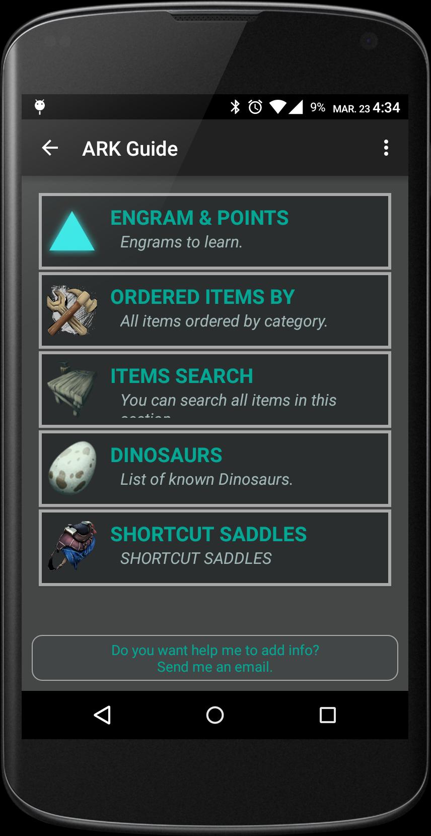 I'm an ARK: Survival Evolved fan and I'm currently developing this guide so other fans can have access to information about the game. This app is in not official and I'm not related in any way with Studio Wildcard (and the rest of games's developers).