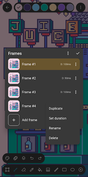 You can bring your sprites to life with animation tools. When creating pixel animations, you can use the onion skin option to easily compare the currently edited frame to the previous frame.