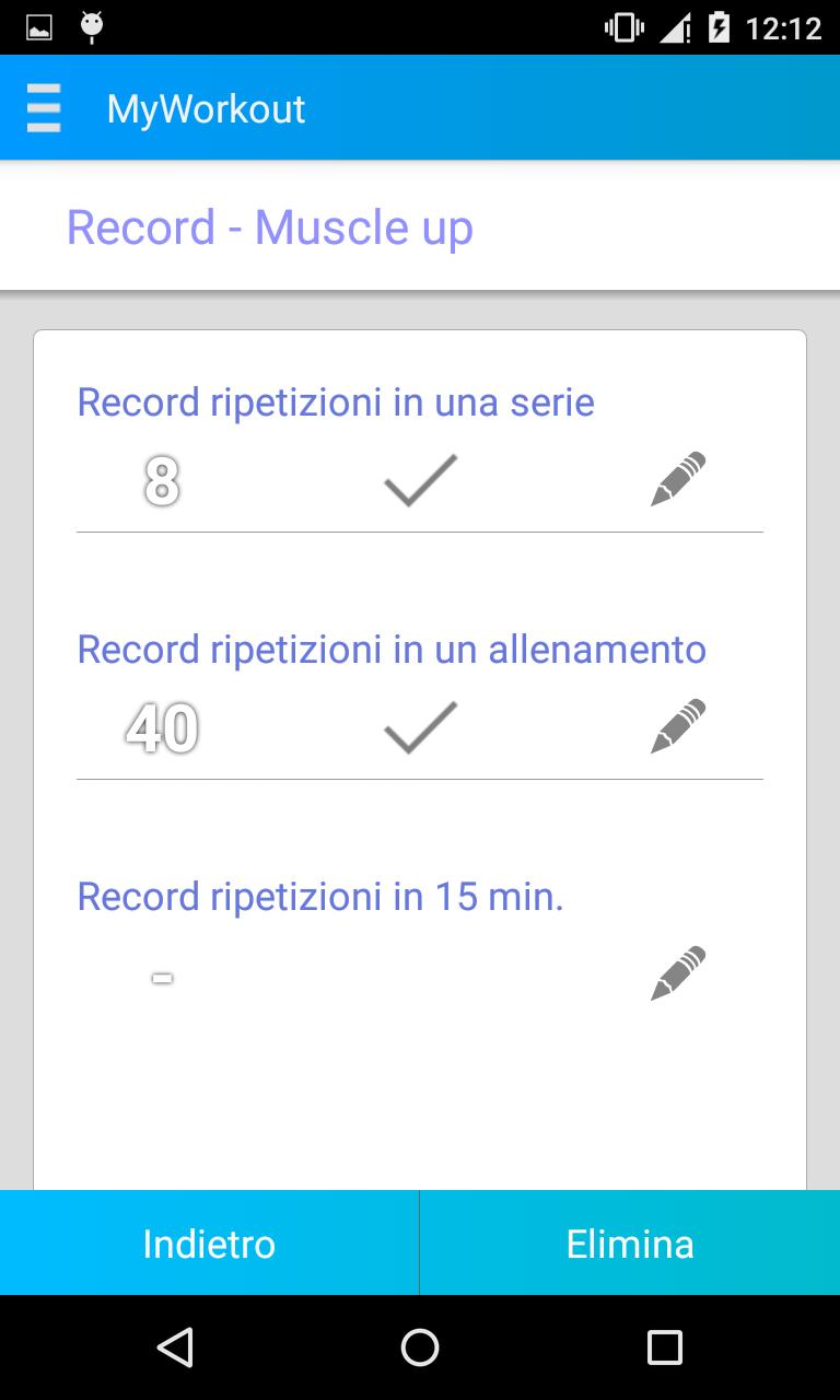 Myworkout allows you to record and memorize your cards, setting exercises, repetitions and series easy and intuitively; In addition, you have the opportunity to insert your personal records on each exercise, such as: