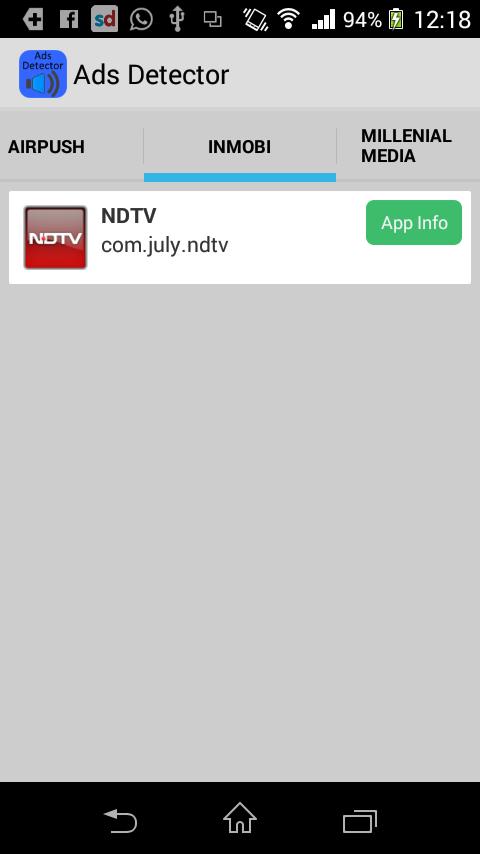 The application will detect the apps that use Android Ad Networks. Currently app supports following Ad Networks detection.