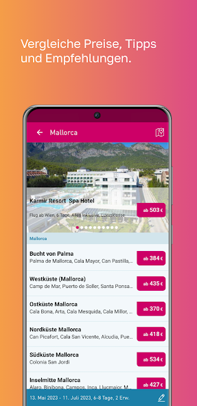 With the ltur Last Minute Reisen app you can quickly and easily find cheap package tours, last minute trips and super last minute holidays with departures within 72 hours - nobody else can do that. Short-term city trips can be booked just as easily and conveniently via the ltur app as spontaneous short breaks or comfortable luxury package tours for romantics. No matter whether you are looking for an exciting city trip to Berlin or New York, need spontaneous relaxation and wellness in Greece or are looking for a summer holiday with your family on the Canary Islands or Mallorca - you can be sure that you will find the right holiday in the ltur app will find.