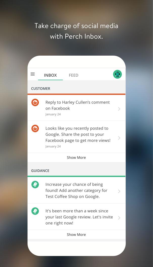Perch is the easiest way to watch, learn, and discover what's being shared about a local business and its competition. Scroll a single feed - all in one mobile app - to capture the total online conversation about what’s being said about a business across multiple networks in a timely way.