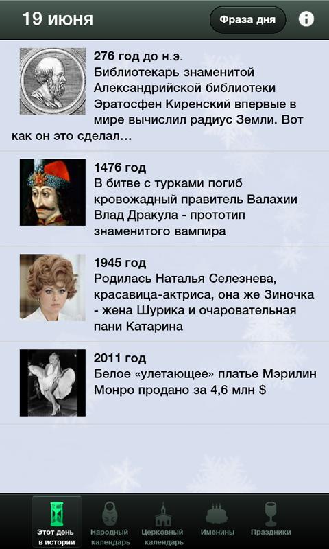 The full version contains much more historical episodes, provides an opportunity to learn about important dates tomorrow, and also includes daily entertaining quiz, "funny" and "phrase of the day."