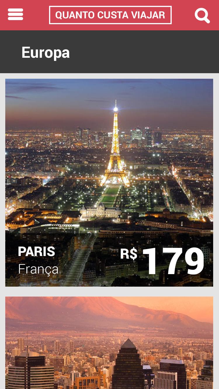 Quanto Custa Viajar helps you calculate the expenses of a trip. With more than 230 destinations around the world, adds airfare values, tourist attractions, transport, food, hosting and through a calculator simulates all spending. To make the calculation, in addition to the amount of days you want to Quanto Custa Viajar at the destination, you also inform your traveler profile: low cost (backpack), economical or comfort. London, Orlando, etc.But the application/site Quanto Custa Viajar is a tool that informs the prices of the main costs of a trip, but does not issue reservations or sale of tickets/entries. We are not responsible for the informed prices, always consult the supplier's official website.