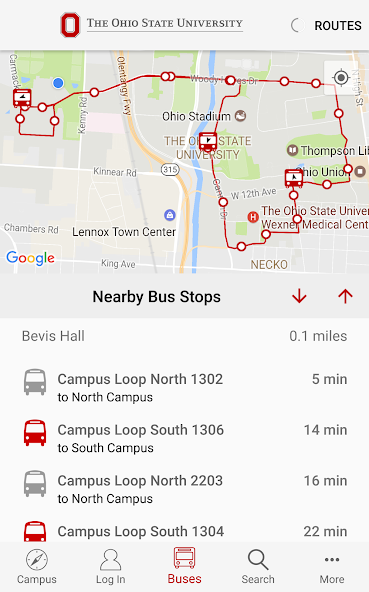 * Add favorite bus stops in the Ohio State Android app, and view them in your Wear app