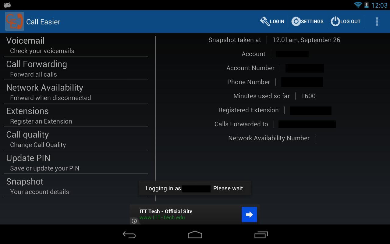 Call Easier is an Android app designed to view/change/update most of your Vonage account's features right from your Android phone. This is the third version that is being released into the market, and unfortunately, is not compatible with any of the previous versions. So, if you used or have any previous versions of this app currently installed, please uninstall it before using this app.