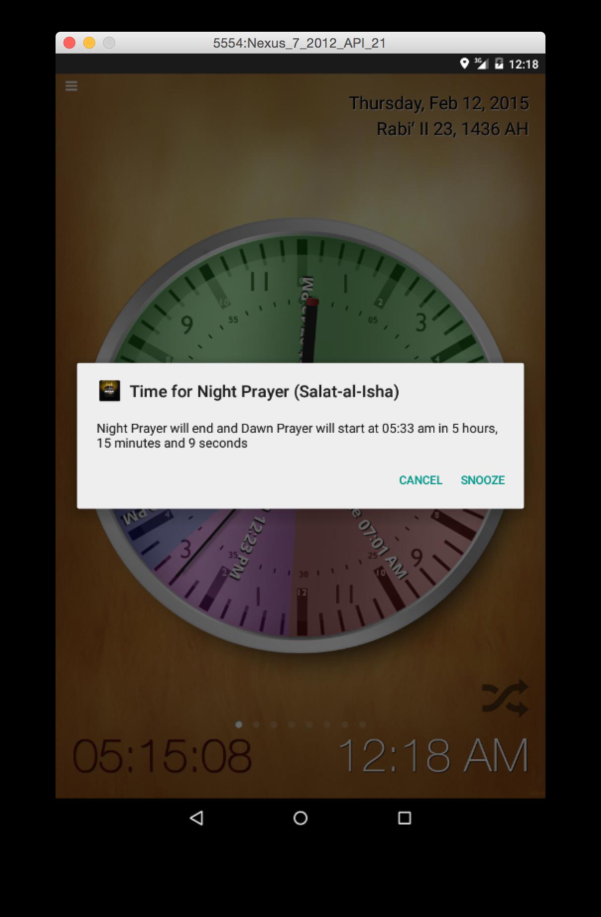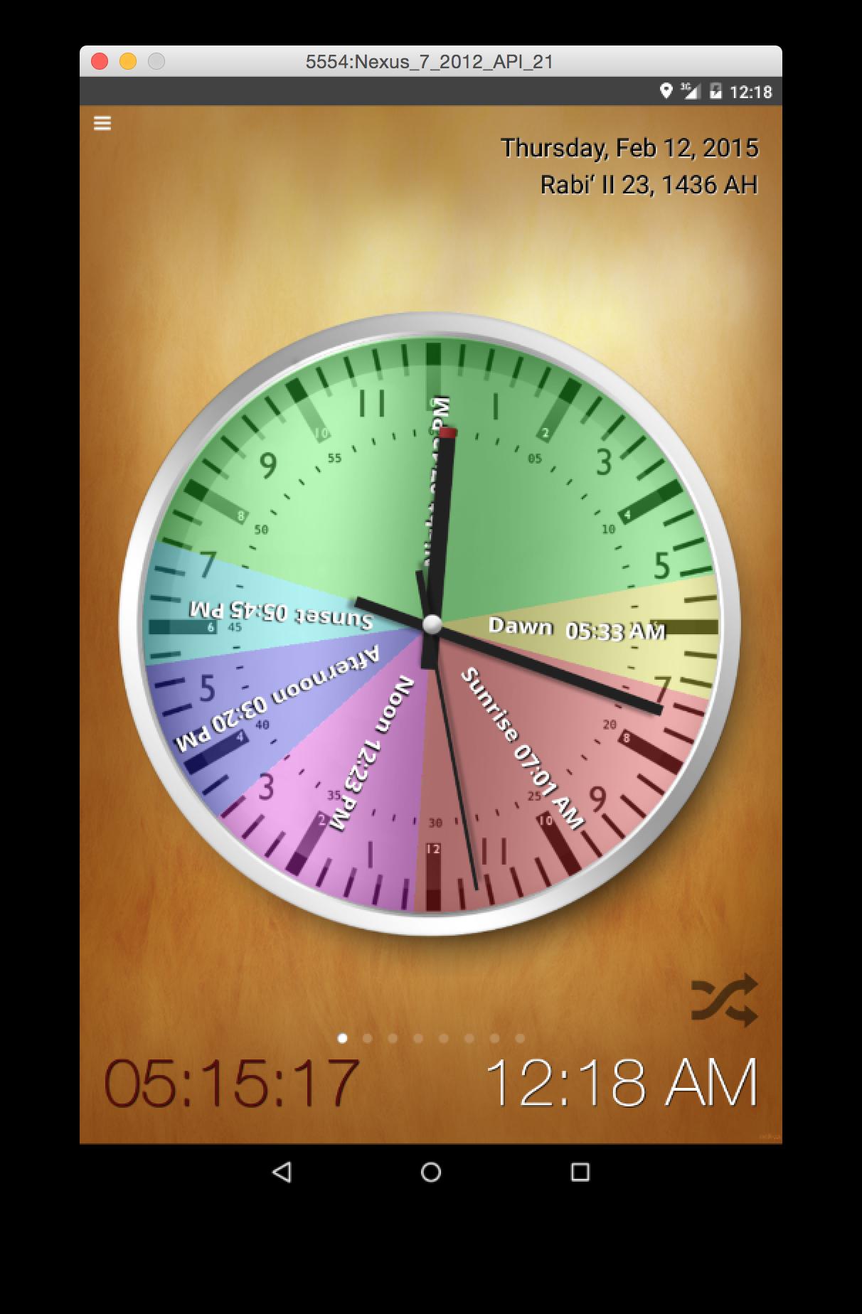 هذه ساعة صلاة يتحدث ، وإذا كانت تعمل بنشاط في المقدمة ، يخبرك التطبيق الوقت باستخدام الصوت عندما يحين الوقت للصلاة أو إذا قمت بالنقر نقرًا مزدوجًا داخل الساعة.