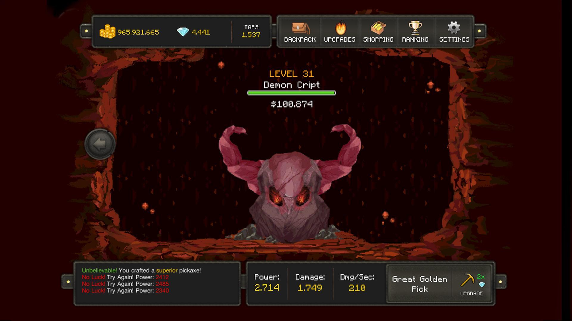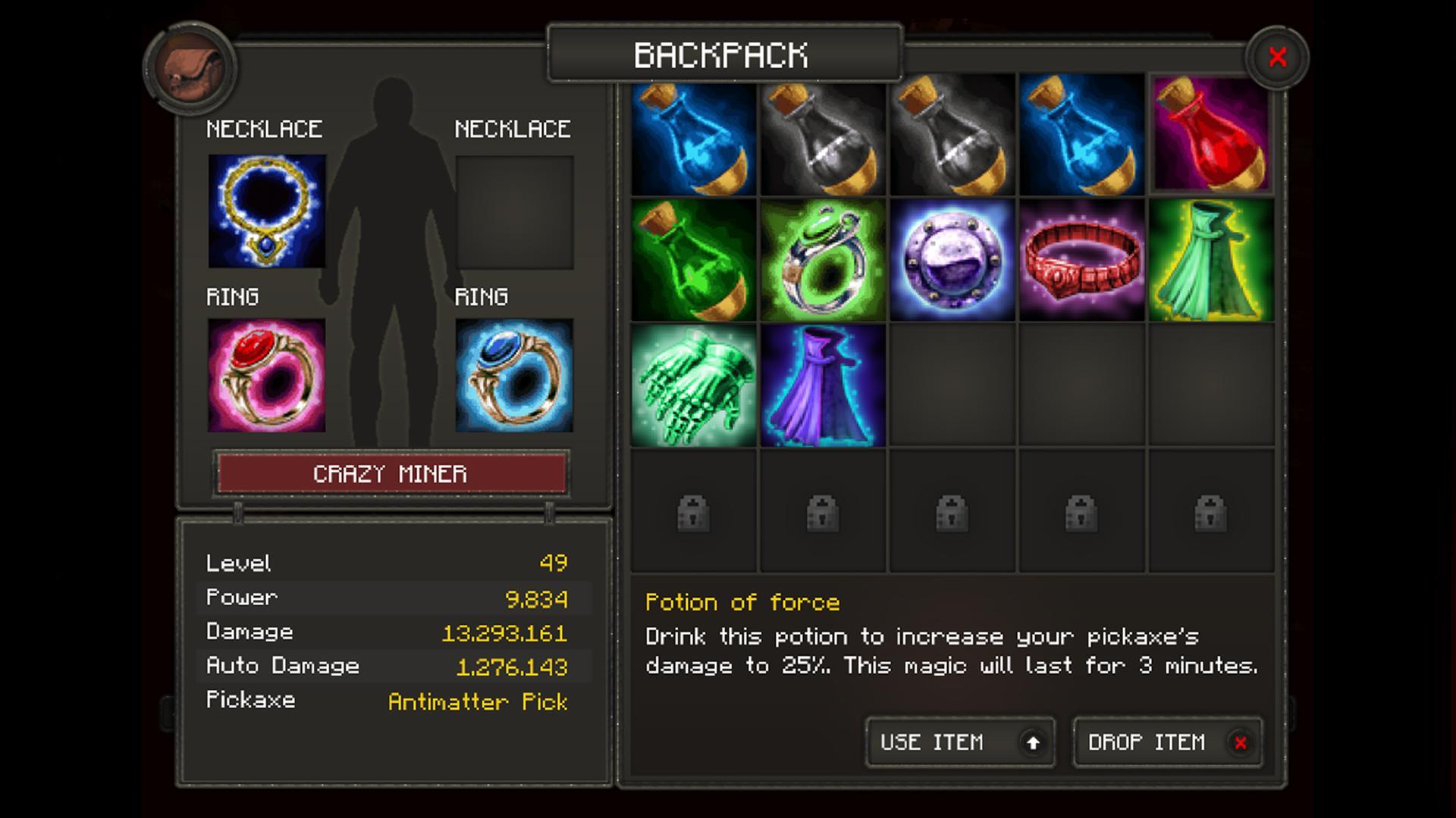 + حرس اختيار أفضل وترقية أدواتك ومهاراتك لتصبح عامل منجم ملحمي وحدادين.
