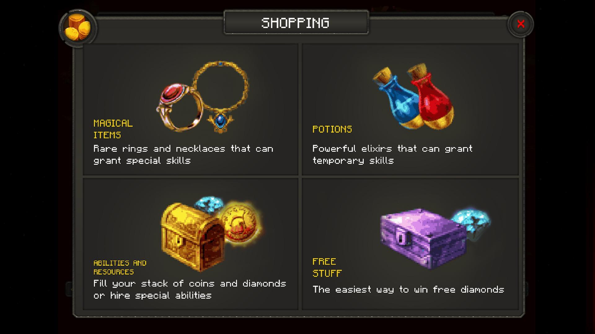 + ابحث عن عناصر سحرية مثل الحلقات والقلائد والجرعات التي ستمنحك قوى رائعة.
