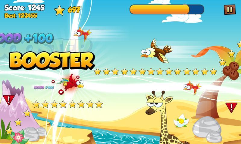 استمتع بلعب لعبة الهروب الإدمان بطريقة سهلة ومعروفة: استخدم شاشة اللمس لتحريك Little Birdy وجمع أكبر عدد ممكن من النجوم! احرص إذا انخفض HP الخاص بك! من خلال رحلتك ، جمع الكثير من الترقيات عن طريق التسوية وحاول تطوير طائرتك! كن مقاتلًا خالدًا مع داعم وضع الله أو استخدم المعزز السريع لتحويل سباق الطيور الحقيقي مثل بطل!