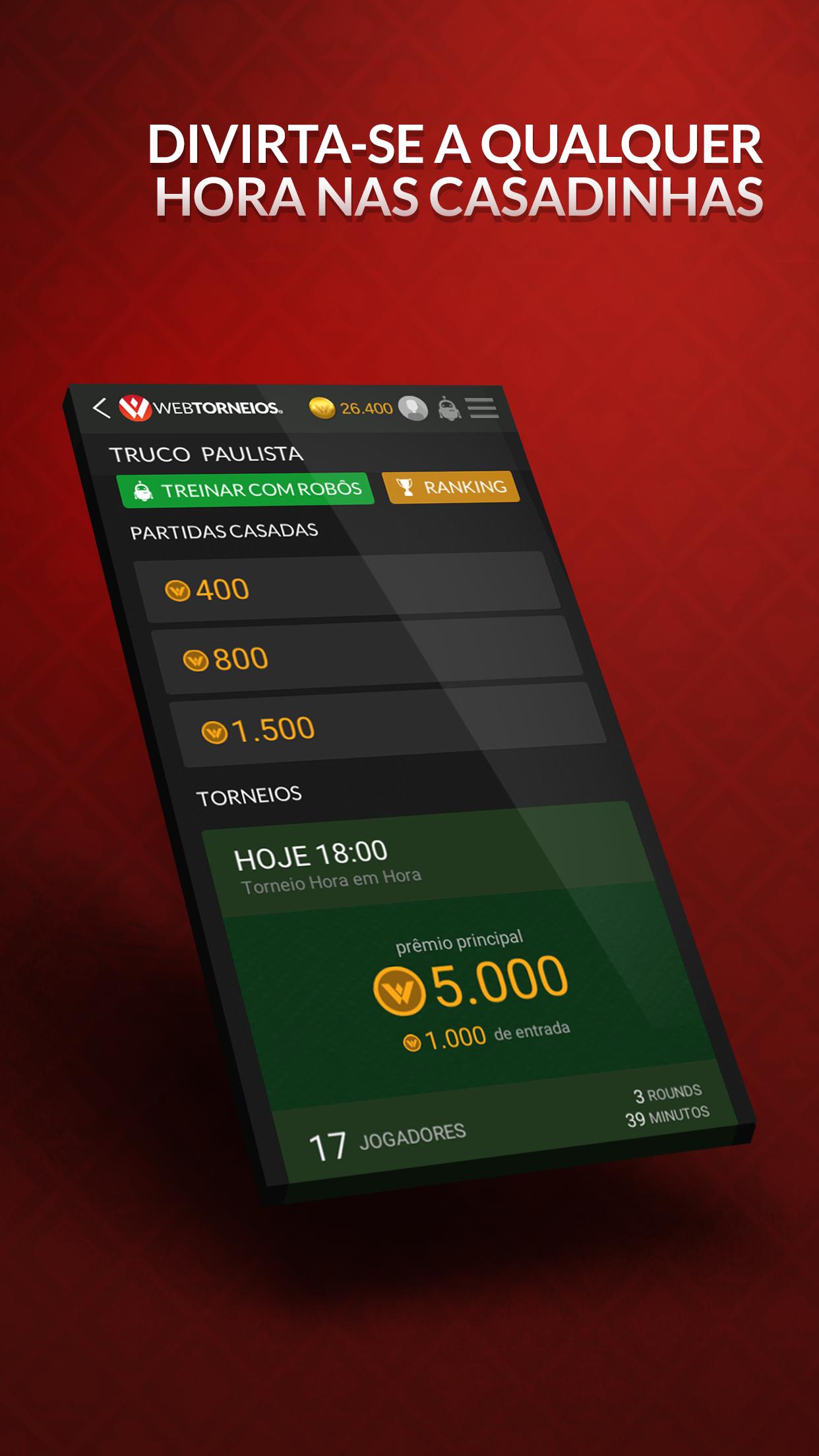 تطبيق Truco Mineiro Free Online مع البطولات و Casadinhas! قم بتنزيل الآن وابدأ تشغيل WebTorneios Truco Mineiro مع لاعبين حقيقيين. كسب 10000 قطعة نقدية افتراضية للبدء في الاستمتاع. عبوات مجانية طوال اليوم!