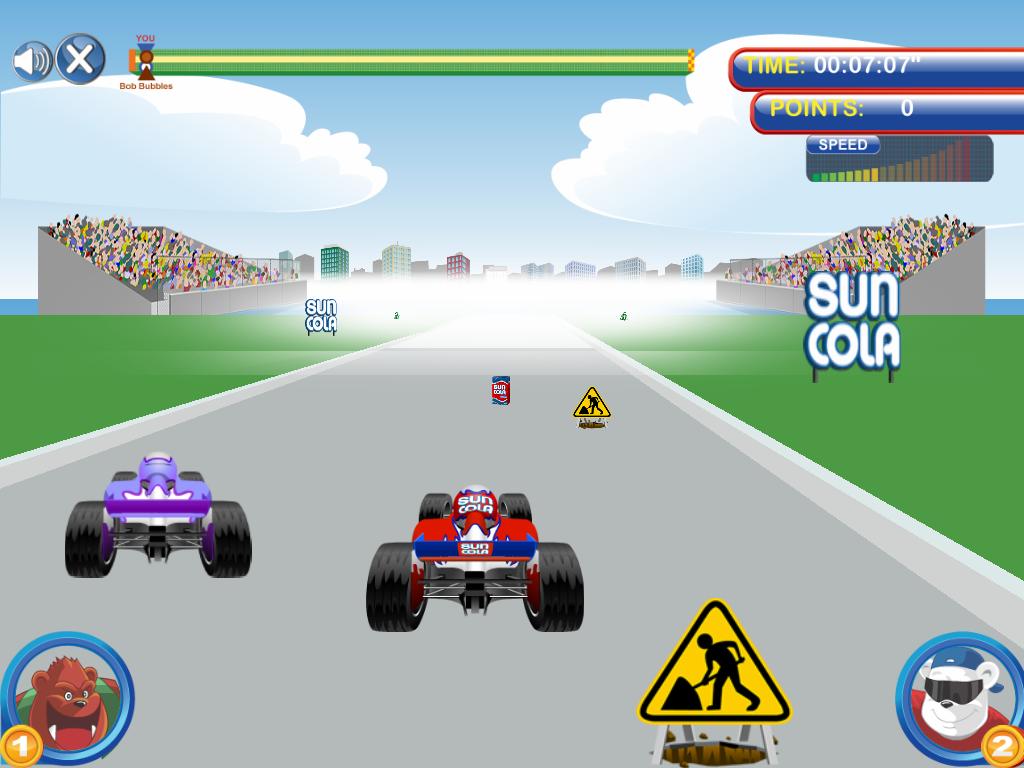 انضم إلى السيد Suncola لسباق الفورمولا 1 والتنافس مع السيد Bubbles حول الوصول إلى خط النهاية أولاً.