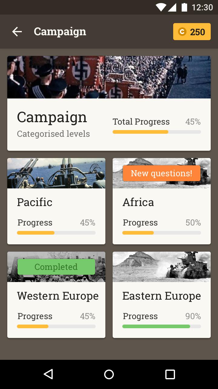 لقد أعددنا أكثر من 300 سؤال في حملة مصنفة مع 4 فئات WWII المنطقية: