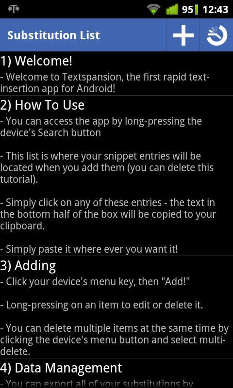 Unabhängig davon, ob Sie das Web durchsuchen oder eine E-Mail schreiben, können Sie auf Textspansion zugreifen, indem Sie die Suchschaltfläche Ihres Geräts langfristig drücken, um auf Ihre Datenbank zuzugreifen. Wenn Sie auf den gewünschten Ausdruck klicken, kopieren Sie sie sofort in die Zwischenablage Ihres Geräts und senden Sie zurück zu dem, woran Sie gearbeitet haben. Von dort aus können Sie es dort einfügen, wo Sie möchten! Speichern Sie alles, was Sie mögen, in die App, die Sie zugänglich sein möchten!