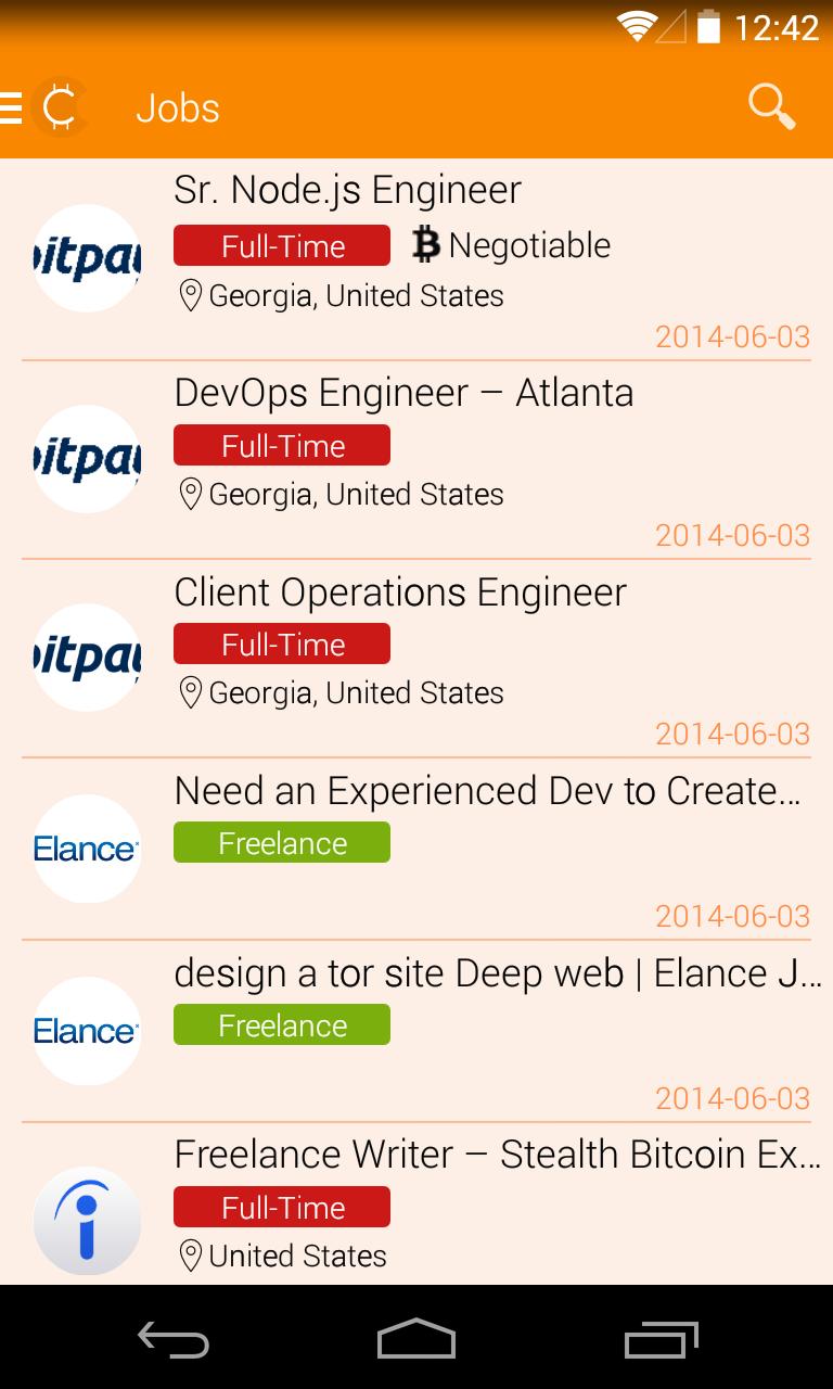 Coinality ist die führende Auftrags- und Lebenslaufplattform für digitale Währungen wie Bitcoin, Litecoin und Dogecoin. Hier kommen Arbeitgeber und Arbeitssuchende, um sich für Möglichkeiten zu verbinden, die in Bitcoin und anderen Kryptowährungen zahlen. Jobs reichen von einmaligen Kopfgeldern bis hin zu Vollzeitbeschäftigung. Die Verhandlungen werden unabhängig zwischen dem Arbeitgeber und dem Arbeitssuchenden behandelt. Coinality kann völlig kostenlos verwendet werden. Laden Sie also die App herunter und verdienen Sie noch heute Bitcoins!