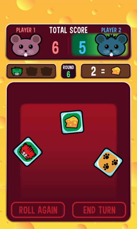 Rollen Sie Ihre Würfel und finden Sie es in Eat Da Cheese , einem Spiel, das Sie in die Rolle einer Maus versetzt, die versucht, mehr Käse als Ihr Gegner zu sammeln, aber denken Sie daran, zu entkommen, bevor Sie eine katzenartige Vorspeise werden!