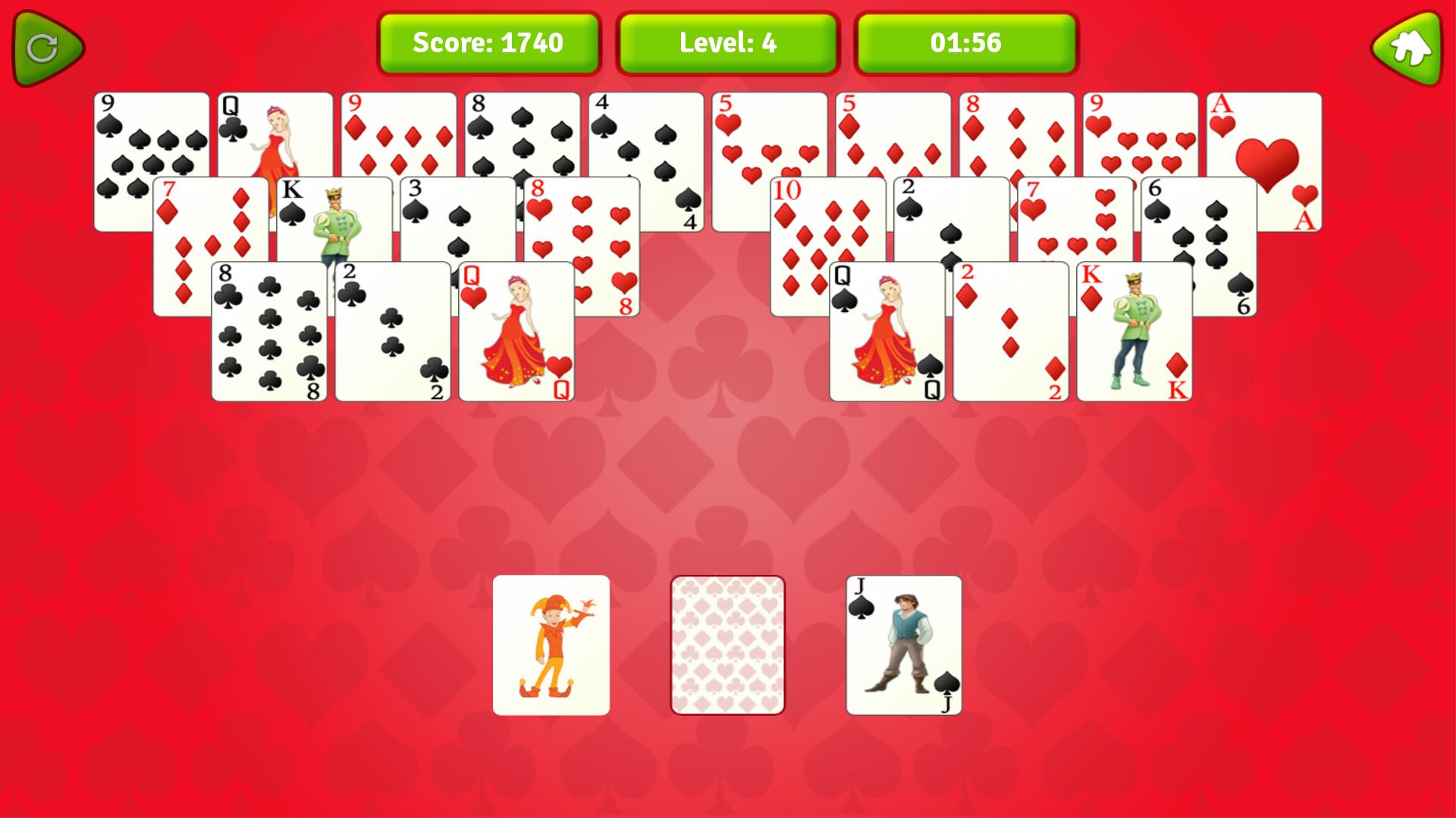 - Entfernen Sie so viele Pyramiden wie möglich, indem Sie die Karten nacheinander entfernen, bevor Sie durch Ihr Kartenspiel oder keine Zeit laufen.