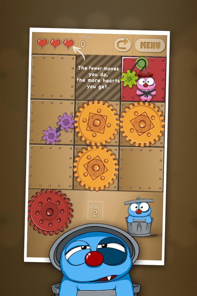 DIESE GETRÄNKE (COGS) von einem Gitterzellen bis zur leeren, um zwei wahnsinnig verliebte Monster durch ein paar ungeortierte Zahnräder getrennt zu machen! Alles begann, als drei Monsterkinder ihren Vater fragten, wie er ihre Mutter traf. Es ist Ihre Mission, ihnen zu zeigen, wie ihre Eltern sich trafen, indem sie süchtig machende lustige Rätsel lösen. Alles, was Sie tun müssen, ist, die Ausrüstung wieder zu verbinden, damit Monster Mom zu Monster Dad kommt! Je weniger Bewegungen Sie tun, desto mehr Herzen bekommen Sie! Seien Sie vorsichtig, in einigen Ebenen bewegen Sie sich gegen den Uhrzeigersinn, was die Monster-Mutter zu ihrem Tod führt!