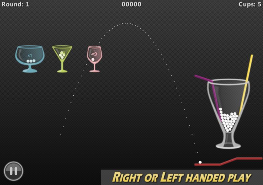 Alle gefüllten Tassen kehren Bälle in den großen Glastopf zurück. Jede leere Tasse wird gebrochen! Dann beginnt eine neue Runde eine neue Kombination von drei Tassen, die in einer horizontalen Linie angeordnet sind. Jede nächste Runde beschleunigt auch die Becher, sodass Sie schneller und schneller spielen müssen, wenn Sie diese Ziele treffen möchten, bevor sie die Spitze des Bildschirms erreichen.