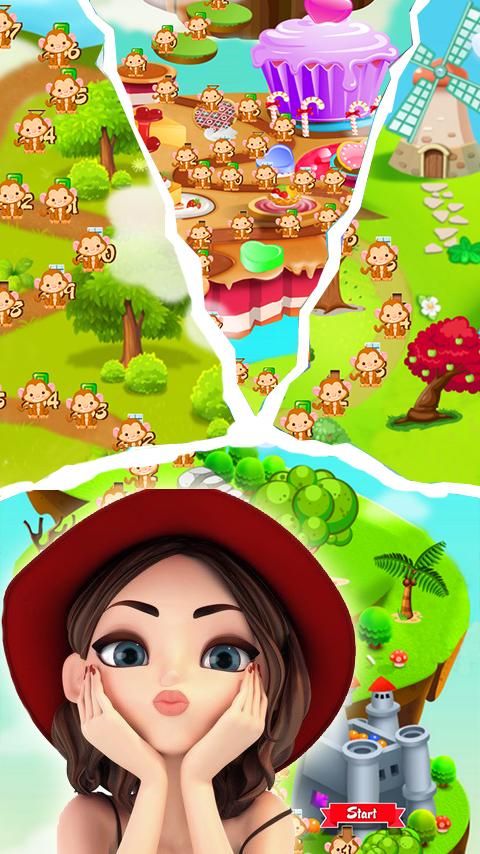 Passen Sie drei oder mehr Süßigkeiten an, um sie zum Boom zu machen, zerquetschen Sie sie! Erreichen Sie die Zielbewertung oder sammeln Sie Süßigkeiten, um auf die nächste Stufe zu gelangen.
