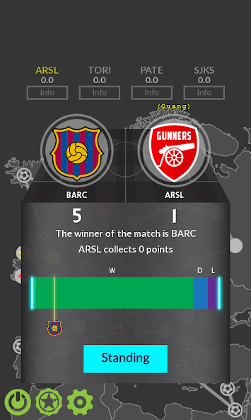 + Match (Ball -Ikone): Wenn ein Team darauf landet, wird zwischen Ihrem Team und Ihrem Host -Team ein Auswärtsspiel geben. Der Match -Vorteil wird zum besseren Ranking -Team gehören und das Match -Ergebnis wird die Basis auf der Leistung dieses Teams berechnet. Das Match -Ergebnis hängt auch von der ausgewählten Taktik oder dem Zufall/Risiko des Spielers ab, die die Spieler tragen. Ihr gewonnener Punkt nach dem Spiel ist die Multiplikation zwischen Win Point (3 Punkt) oder Zeichnungspunkt (1 Punkt) mit dem Team des Teams.