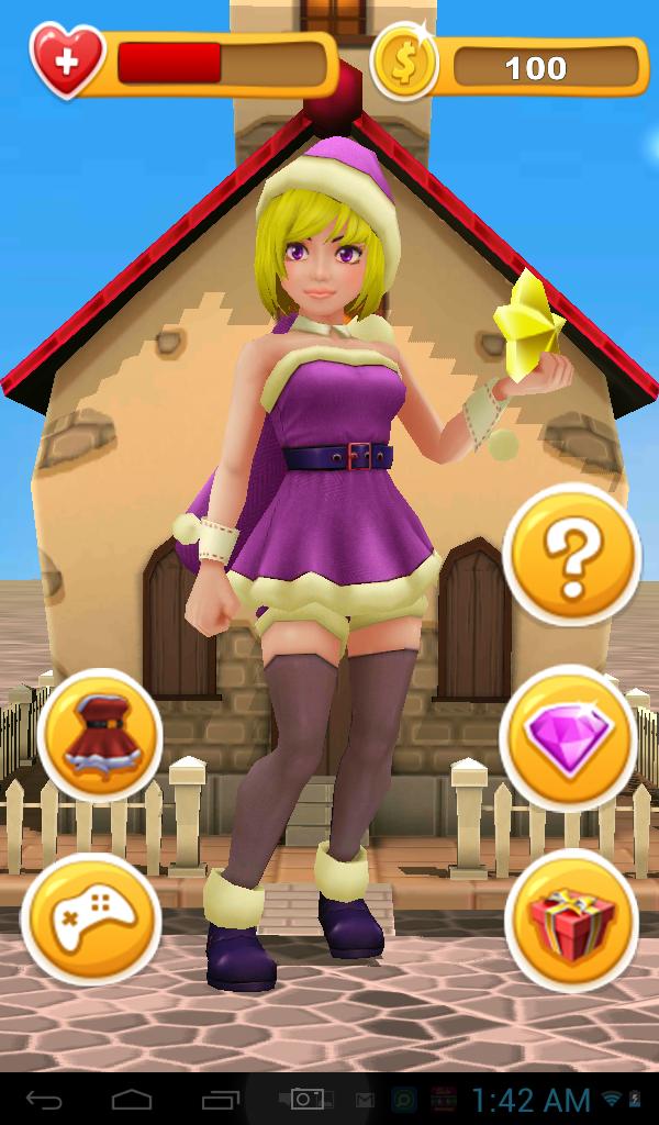 Sie können ihr Kostüm ändern und ihren Edelsteinen geben, um ihr Glücksniveau zu erhöhen, und sie wird Ihnen das Geschenk zurückgeben. Sie können Mini -Spiele spielen, um Münzen zu verdienen.