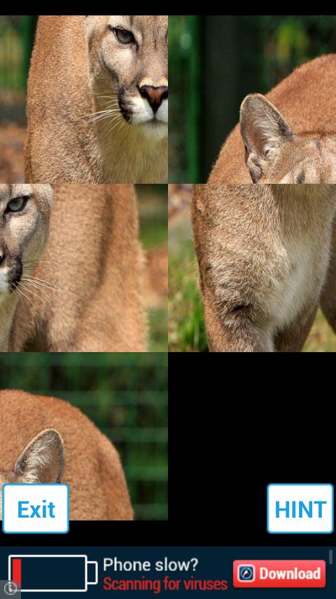 Sie müssen die Teile zusammenfügen, um zum richtigen Bild zu gelangen. Sie können eine Herausforderung (aus einer Reihe von wilden Tieren) sowie eine Schwierigkeit (6, 20 und 28 Teile) auswählen.