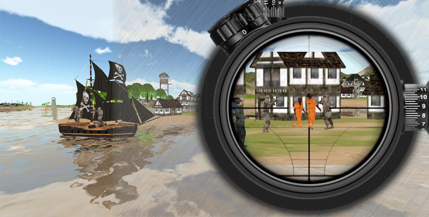 Sie waren auf einer bekannten Pirateninsel durch ein Schlachtschiff. Sie sind allein mit Ihrem Scharfschützen und müssen alle Piraten auf der Insel verfolgen und sie alle nacheinander töten.