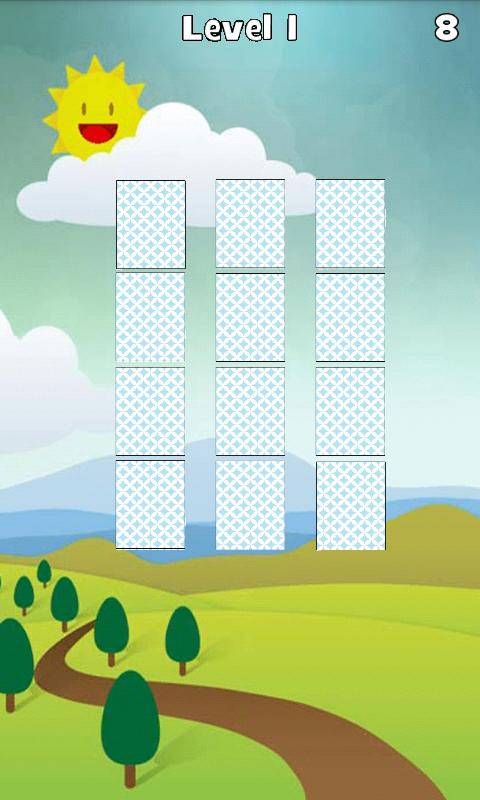 Die Karten werden in einem Raster bedeckt und entdecken die Karten, wenn die beiden Karten gleich sind, dass sie aus dem Spiel entfernt sind. Wenn sie jedoch unterschiedlich sind, decken die Karten erneut ab und Sie verlieren einen Schritt.