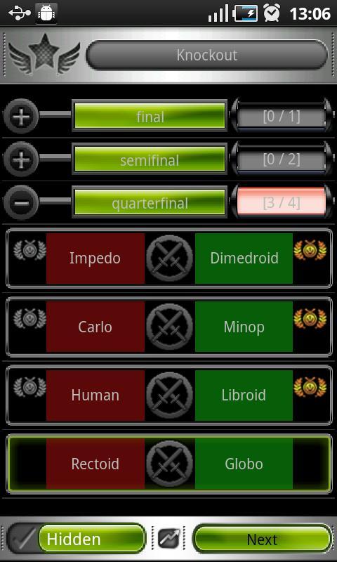 Zusätzlich zu "Single Game" haben wir 3 Arten von "Turnier" hinzugefügt: One-Play-All, All-Play-All, Knockout.