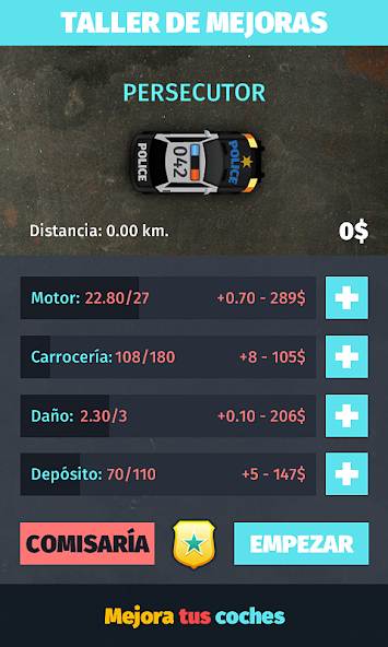 ★ Sammeln Sie den Bonus der Straße, um Geld zu verdienen, Ihr Polizeiauto zu reparieren oder zu tanken. und Ölflecken und Streifenspikes ausweichen.