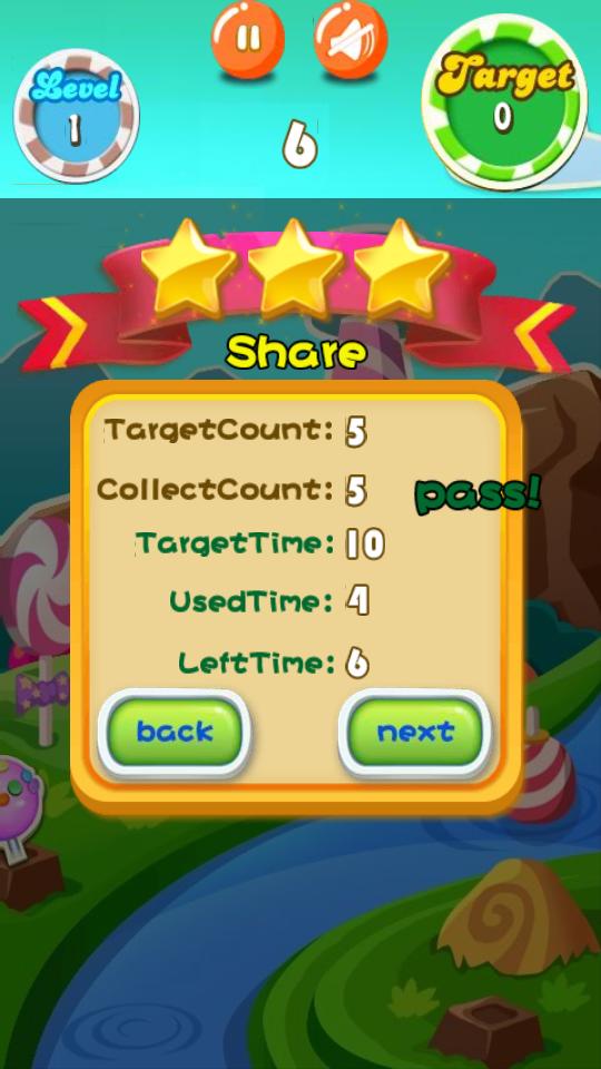 Dies ist ein kausales Sammelspiel, es ist bisher nur noch nur noch ein. Player muss genug Süßigkeiten von der Dropdown unter der Zeit sammeln. Sicherlich können Sie um Hilfe bitten.