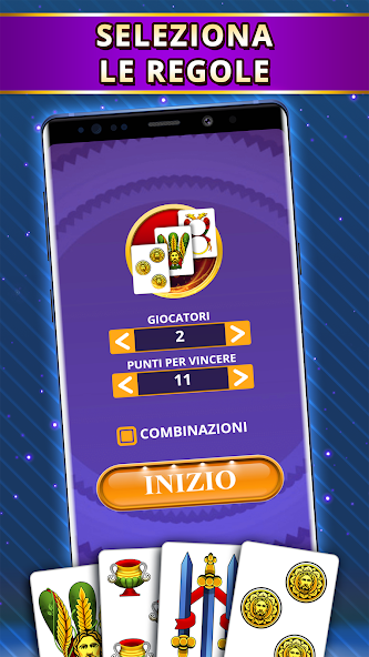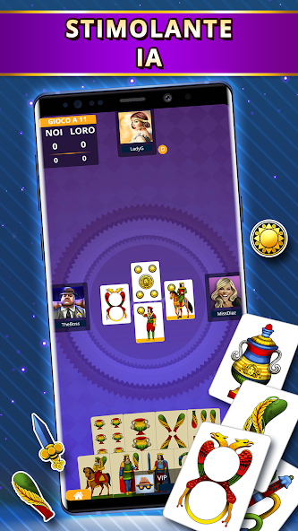 Spielen Sie Tressette Offline ! Einzelspieler -Kartenspiel gegen 1 oder 3 KI -Spieler.
