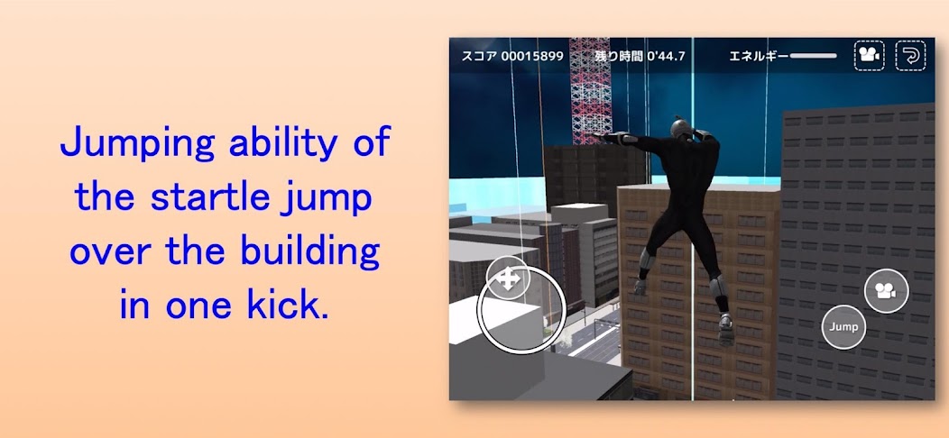 Die Sprungfähigkeit des Schrecks springen in einem Kick über das Gebäude.