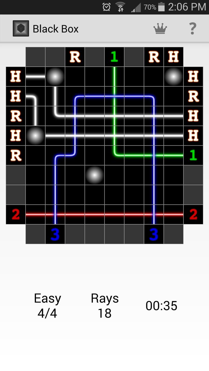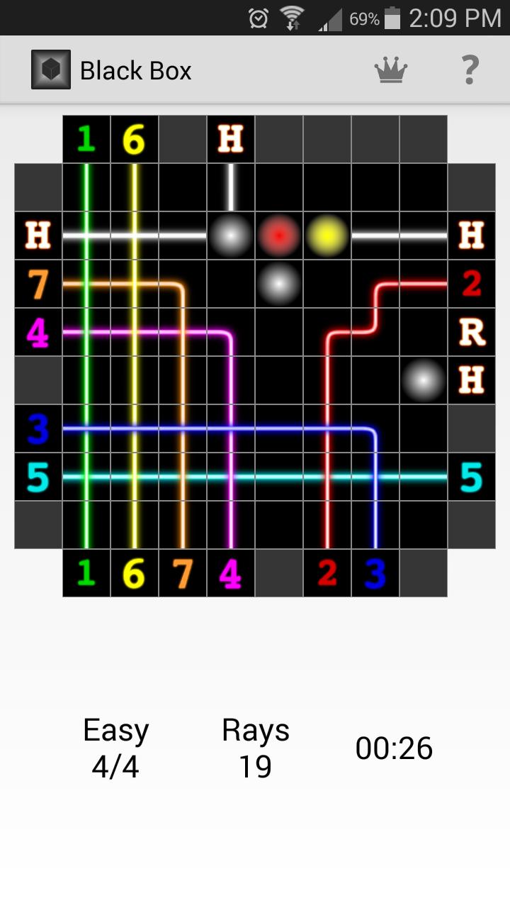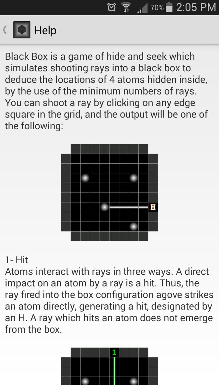 Das Ziel des Spiels ist es, die versteckten Atome in einer schwarzen Schachtel zu lokalisieren, indem sie leichte Strahlen in die Schachtel schießen und die Art und Weise beobachten, wie diese Strahlen sich widerspiegeln, um die Positionen der Atome abzuleiten.